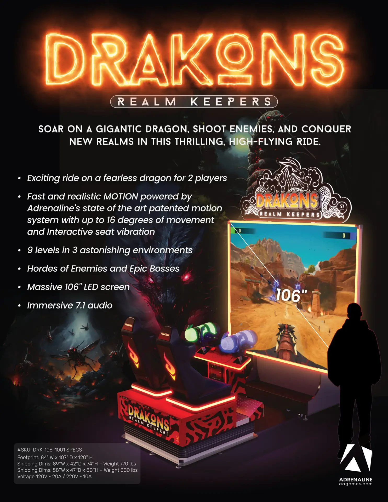 Take your business to new heights with Drakons! This dragon-riding adventure is sure to ignite profits and create a truly unforgettable experience for your customers, brought to you by Planet Arcade.