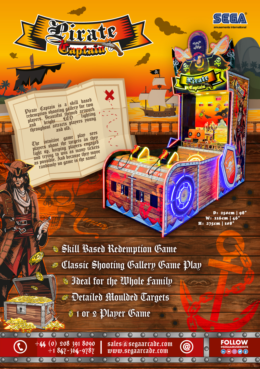 Don’t miss out on the pirate adventure of a lifetime! Pirate Captain is the perfect addition to your arcade, delivering fun and excitement for all ages. Get yours now at Planet Arcade.